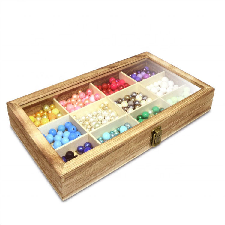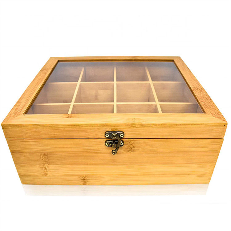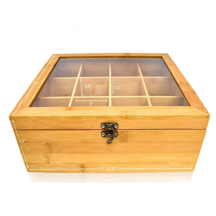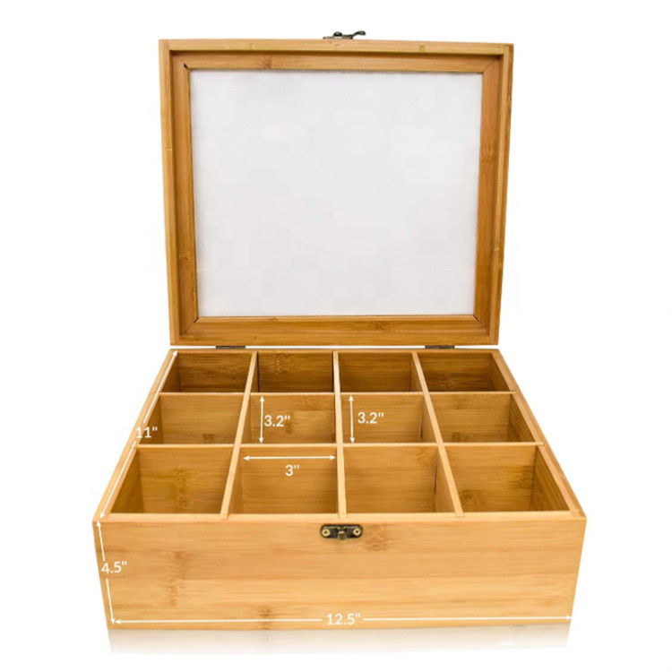 جعبه چای کیسه ای ذخیره سازی طبیعی 12 محفظه جعبه هدیه سفارشی سازمان دهنده جامد جعبه چای چوبی بامبو با درب شفاف