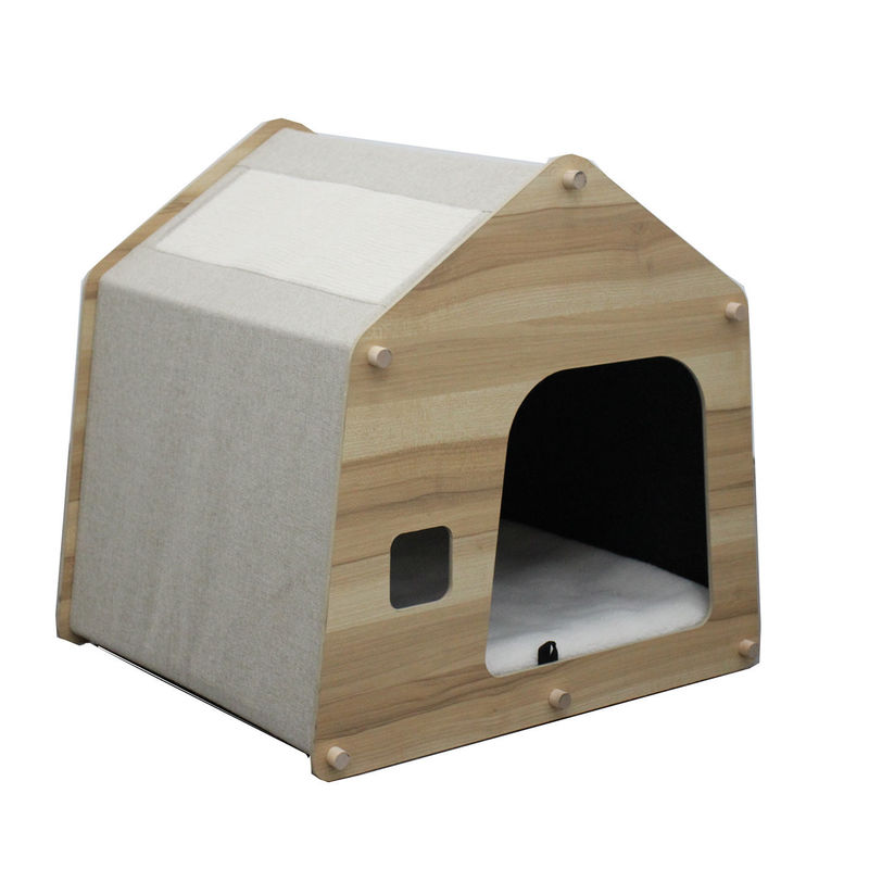 ساختار اصلی: سازه اصلی یک خانه گربه تاشو معمولاً از چوب جامد یا پانل های چوبی با کیفیت بالا ساخته می شود.این مواد دوام و پایداری بسیار خوبی دارند و می توانند پناهگاهی قوی برای گربه ها فراهم کنند تا احساس امنیت و راحتی کنند.