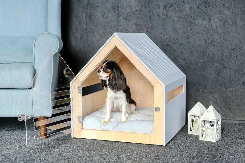 قاب خانه چوبی: ساختار اصلی تخت سگ شکل خانه معمولاً از چوب جامد یا پانل های چوبی مرغوب ساخته شده است و به طرز هوشمندانه ای مانند یک خانه کوچک طراحی شده است و یک فضای استراحت خصوصی و امن برای سگ ایجاد می کند.