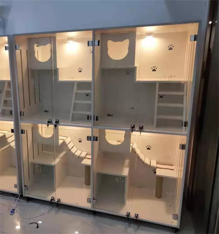 هتل کاتری یا پت: در هتل کاتری یا پت، ویلای چند طبقه گربه نیز یکی از مبلمان محبوب حیوانات خانگی است.این یک فضای زندگی مجلل برای گربه ها فراهم می کند تا احساس ناز و مراقبت کنند.