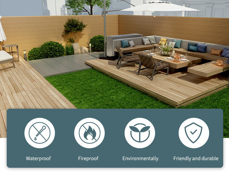 جنس WPC: پانل های روکش چوب در فضای باز مشبک WPC از کامپوزیت چوب-پلاستیک (WPC)، مخلوطی از الیاف چوب و پلی اتیلن یا رزین پلی پروپیلن با کیفیت بالا ساخته شده اند.مواد WPC بافت و بافت طبیعی چوب را با مقاومت در برابر آب و آب و هوای پلاستیک ترکیب می کنند و آنها را برای دکوراسیون فضای باز ایده آل می کند.