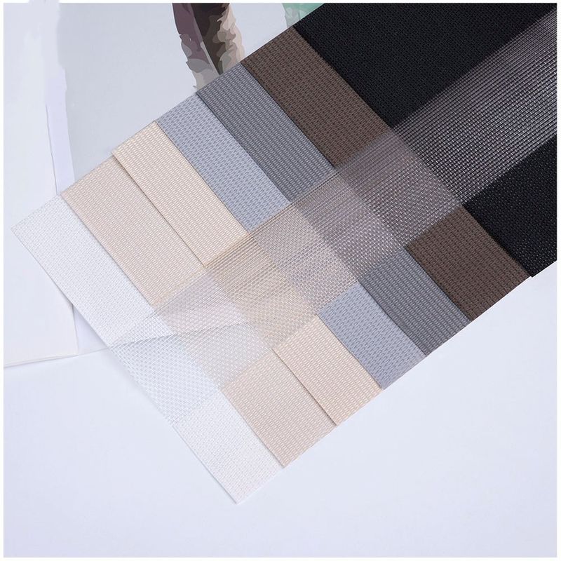پارچه خاموشی: پارچه پرده خاموشی کرکره از مواد خاموش کننده استفاده می کند، معمولاً پارچه خاموشی با تراکم بالا.این پارچه می تواند به طور موثری ورود نور خورشید و نور خارجی را مسدود کند و جلوه سایه بهتری برای اتاق ایجاد کند.