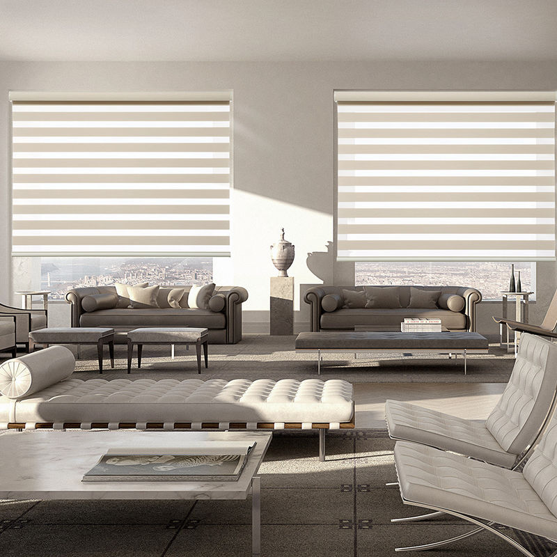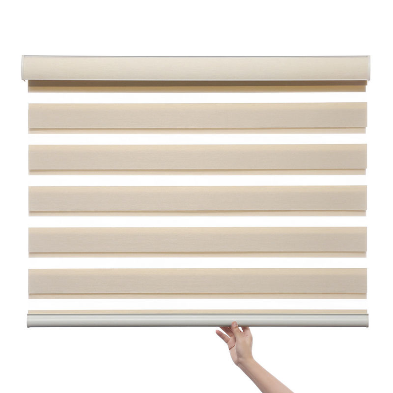 پرده دوبل: کنترل فنر شارژی ایمن برای کودکان در پرده های دوبل از دو پرده استفاده می شود که معمولاً از آلیاژ آلومینیوم یا پلاستیک ساخته شده اند.این طراحی به پرده ها اجازه می دهد تا هم نور را تنظیم کنند و هم حریم خصوصی را فراهم کنند.