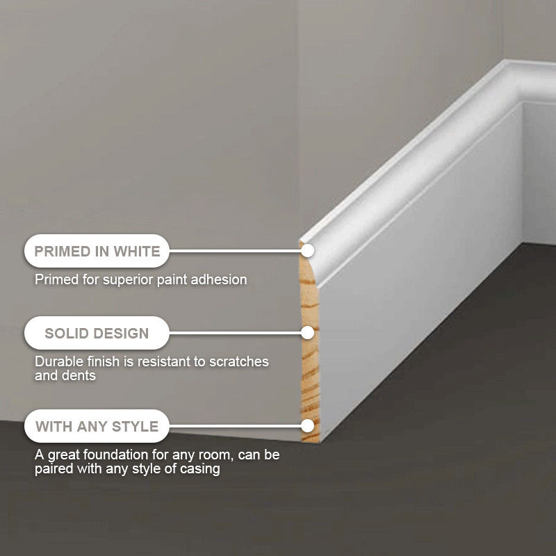 | نام محصول | Gesso Coated LVL Baseboard Molding Primed Baseboard Moulding |